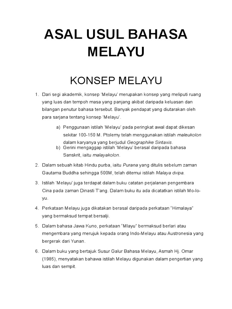 Pdf 1 1 Asal Usul Bahasa Melayu Erna Nastazsa Academia Edu
